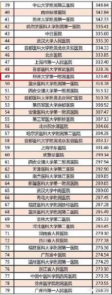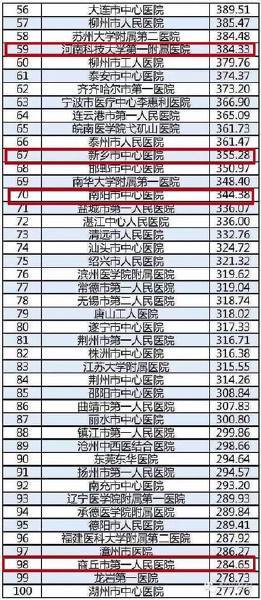 地级城市医院百强中,新乡医学院第一附属医院河南省排名第一↓↓↓