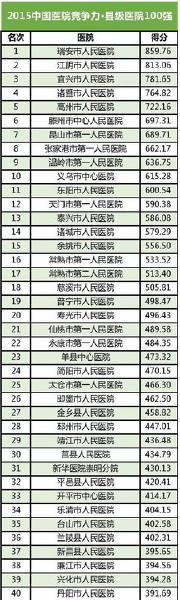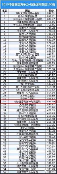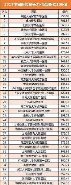3月26日,香港艾力彼医院管理研究中心在广州公布了2015中国医院竞争力排行榜。这个排行榜共分为六大类: 顶级医院、省会市属医院、地市级城源究市医院、县级医院、非公立眨概医院、中医医院 ,每类医院都评出了前100强。
