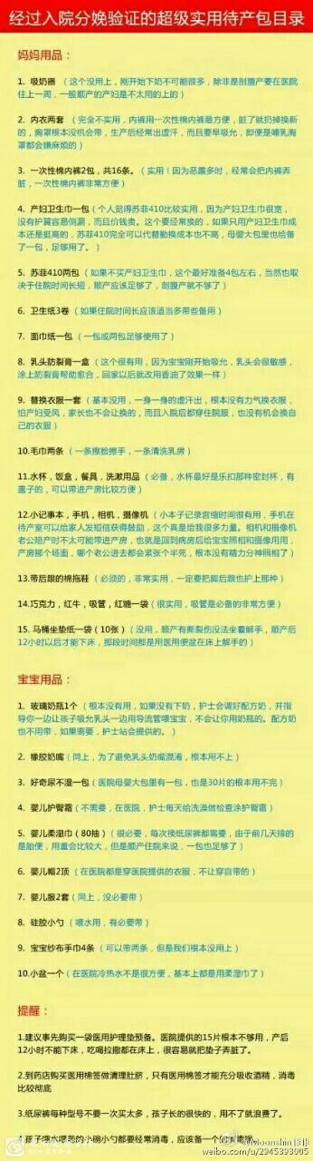 每一个即将入院的孕妈,都有神经紧张的一刻:住院分娩到底要准备厉怪柴什么东毯征西?!看看这份经过事实考验的待产包清单,看看你半神有没准备多余的东西,有没有漏掉重要的东西。