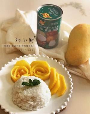 8.淋椰浆。在糯米饭上淋上椰浆,放上装饰薄荷。拍照、开吃吧~(我光顾着凹造型拍照,忘记淋椰浆了😂图片中的糯米饭上还木有椰浆)