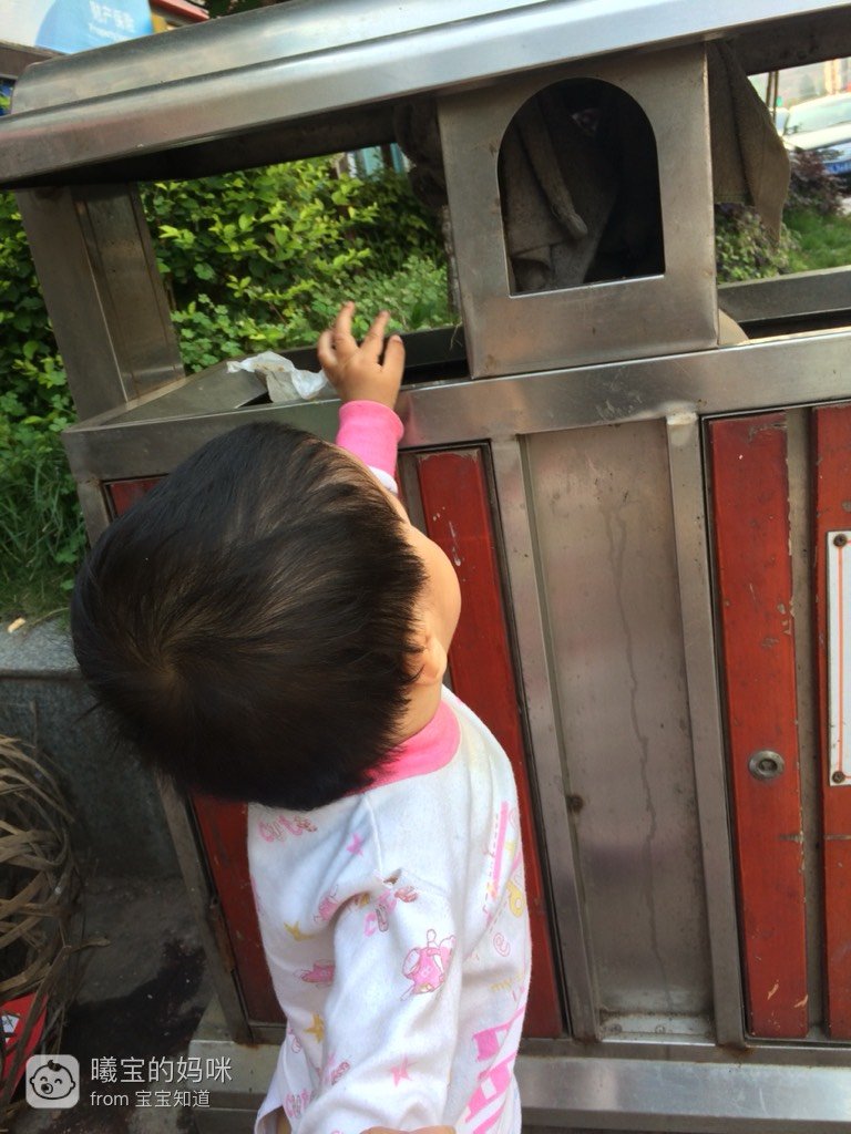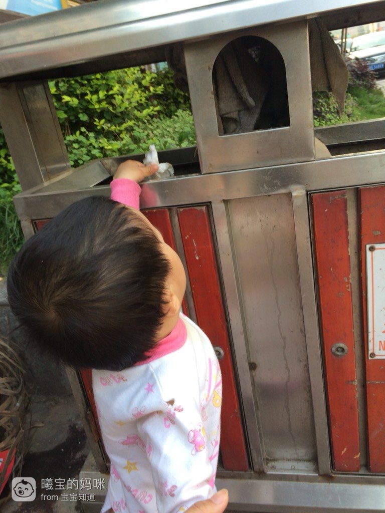,一说到扔垃圾,他就明白了,看看哪里有垃圾,再去寻找垃刺狗圾桶……小样儿真是萌翻啦!