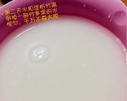 第二天水和淀粉分离,倒掉一部分多余的水搅匀,千万不能太厚
