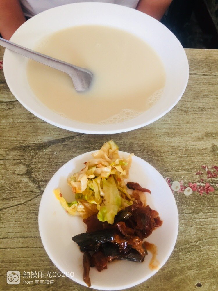 宝贝吃了也不饿了,宝爸又吃的鸡蛋灌饼,而我选择了里脊扒饼,肉是很多的,不信你们一会看,鸡蛋灌饼加了一根香肠,还要了一碗小米粥(宝贝说喝,最后也没喝),要了一碗豆浆,吃的饱饱的,最后消费了19.5。