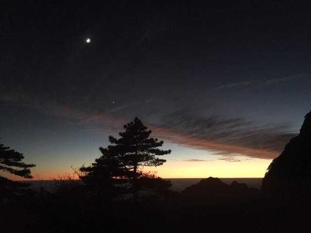 黄山行,传说中的鲫鱼背 公婆今年76岁,陆续有去过几次黄山,由于各种原因都没能爬天都峰。年纪大了,了却夙愿的心越发强烈!经过规劝未果,只能规划好路线,确保体力可以的情况下,恐高的我陪同出发。 由于我在上海,车程大概在6个小时左右。带了不少行李,又是两个高龄老人,觉得开车还是方便自在些。 公公有房颤,婆婆还心动过速。路上准备了巧克力,旺旺仙贝,GNC的Q10(插一句,的确非常管用,对心脏起到辅助作用,起码我们家的人和我同学吃了很有效果)就是没有心脏毛病,平时一天一颗强力抗氧化也是很不错的。)对了,还带了些告崇炼加拿大的西洋参片。过路费大概200元。 行程: 第一天早上九点准时出发,早上吃的饱饱的,为了节省时间午餐没有吃,就车上吃了些水果面包之类。再说服务站的东西也很难吃啊!两点多到山脚下吃的午餐什么臭鳜鱼啊,毛豆腐啊,土鸡汤等等味道中等,菜品干净。 重点来了:这几天有吃过几家店,你们具体大众点评查一下,我强烈推荐山脚下“眼睛家土菜”这家店!不用怀疑,我是资深超级无敌大吃货,我觉得好吃那是真好吃,他们家的土鸡汤一点点一丝一毫杂味都没有,超级超级超级无敌好喝!鸡汤其实能做好的不多,就是我家里买的土鸡自己炖的也比不了,这是我目前为止喝过最好喝的鸡汤,没有之一! 到达目的地后为了方便我们入住的是黄山换乘中心旁边的程景酒店,忘记他们有代售门票,现在没有。反正淡季都不需要排大队的。这家酒店别看又小又便宜(260标间,有一间还给免费升级了),但服务不错,还是超过价格价值的也比较干净。早餐就是一些咸菜,鸡蛋菠脂,白米粥,几片面包,一些蔬菜,泡的奶粉和咖啡。也凑合能吃,卫生条件可以。亲们可以放心住。 第二天 早上九点出发,开车五分钟到换乘中心,车子可以停在他们专属停车场,一晚上大概50元。有人看管。 现在是偏淡季吧,排队购大巴票十分钟,依次排队安检坐大巴前往云谷寺购索道票(80,门票230),然后我们是坐索道(25分钟)到白鹅新站。下了索道映入眼帘的就是气势磅礴的山脉与远处水墨画啦。 由于是带着两位老人,所以都没有去北海,一路上光明顶,西海、鳌鱼洞,一线天,再到迎客松。大概路程六公里多点,走走看看,一点不累。一路上看到了云海,奇石怪松,风景不错。 到了迎客松已经晚上五点了,也是到了我们的酒店玉屏楼宾馆(1080标间)。他们应该也有四人间什么的。据说旺季时大厅里也睡游客的。住到这里是为了第三天直接下去,带公公爬天都峰节省体力。还有一个好处是旁边就是大名鼎鼎的迎客松,没人时想怎么拍就怎么拍,运气好傍晚看日落(我拍了没上图),日落结束看晚霞(图片上晚霞和云海就是玉屏楼门口拍的)夜晚看星星(老公去了,我呼呼呢),早上看日出云海! 第三天,玉屏楼一路往下,就是天都峰入口,老公给我们背了巧克力和西洋参茶,还有几瓶水。我和76的公公轻装上阵! 天都峰总共有1564个台阶,两旁都有绳索,一开始台阶比较平,到后来就有点险了,有些路段没有绳索但有石壁上特意凿出的石洞可以抓。反正我是手脚并用爬上去的。我感觉最难的不是万丈悬崖中的鲫鱼背(仅一米宽,长10米)而是快到鲫鱼背时的那段80度垂直的路。大家还是小心为妙吧! 在山下时,以为自己会有多害怕,停停歇歇一路往上。带头的居然是公公,一路照应着我。快到鲫鱼背时也有说要放弃但是被老公硬赶着走。真的坚持了吧,还的确美景总在最高处!站在鲫鱼背上居然一点也不恐高不害怕,反而是一种自豪与海阔天空的赶脚! 爬完天都回到玉屏楼下到玉屏索道(90票价)再大巴回到来时的换乘中心停车凡涌场!开车进山到黄山温泉酒店住了一晚(切记车辆进山要提前一天叫山里宾馆登记的,否则不允许进入哦),房费大概八百多含了一张温泉票,温泉我总感觉是自己烧的水哈哈,不过解解疲乏也是好的。老人在也不适合连夜赶路回去,故多住一晚。第二天早上用过早餐九点多就打道回府了! 当公公站在天都峰开怀一笑时,有了些许感动。这才意识到为何人家说老小孩老小孩,为何很多老年人开始拼命关注健康,吃各种保健品。因为他们怕啊!辛苦操劳了一辈子,时光却不等人,身体也未必允许他们去完成年轻时的愿望!所以他们会撒娇,会渴望。渴望离子女近一些,渴望时刻被关注,渴望得到尊重! 好吧!黄山之行,最大的收获还是“子欲养而亲不待”,愿父母身体健康,能互相陪伴,享受天伦! 注意注意忘记说了:半路看看时间还够我们又驱车三十公里去了大名鼎鼎的宏村,结果大失所望!无非是青砖,白墙的一个小村子。门口有条拍照片不错的河,门票104,真的没有什么好看的。