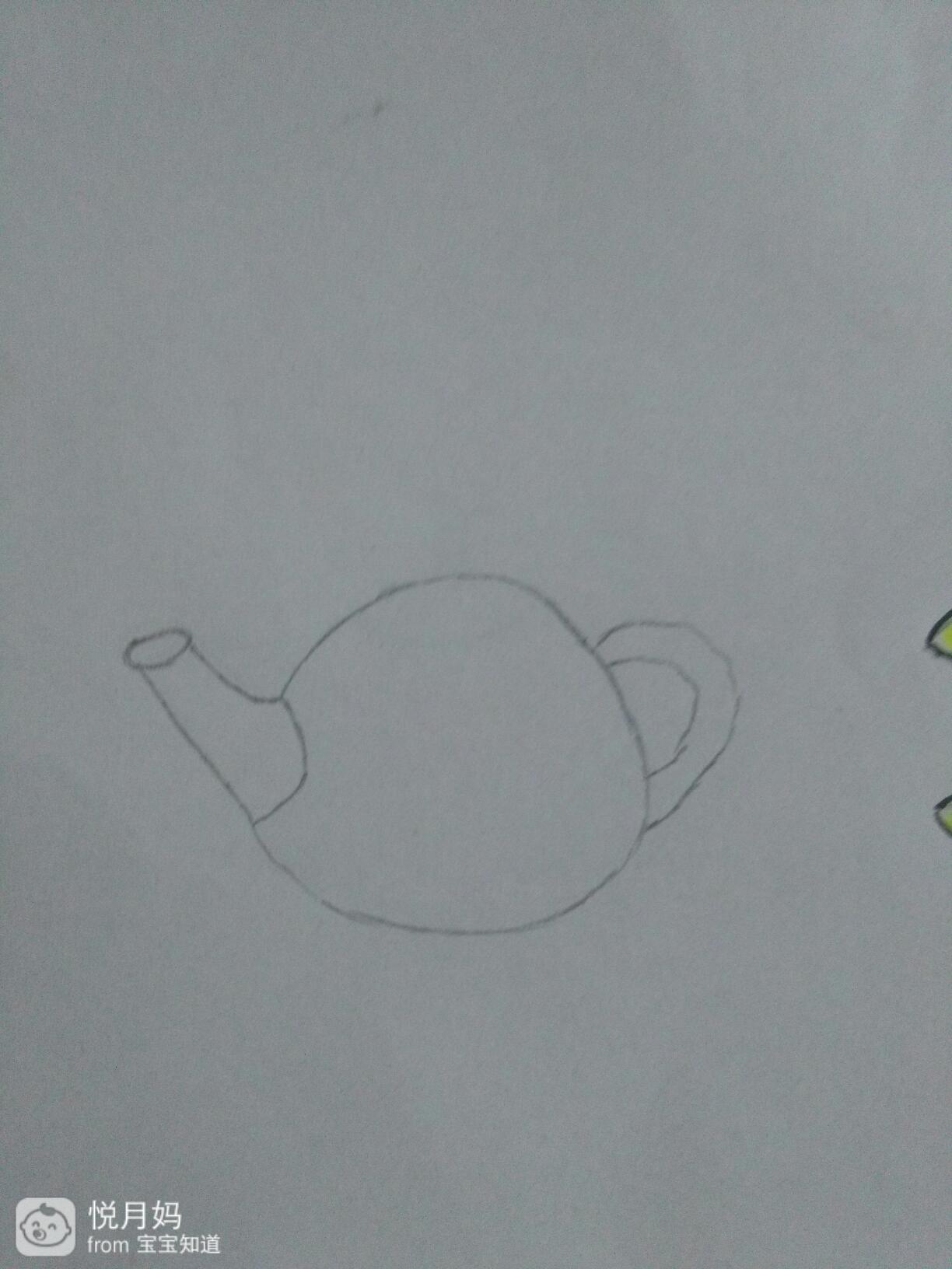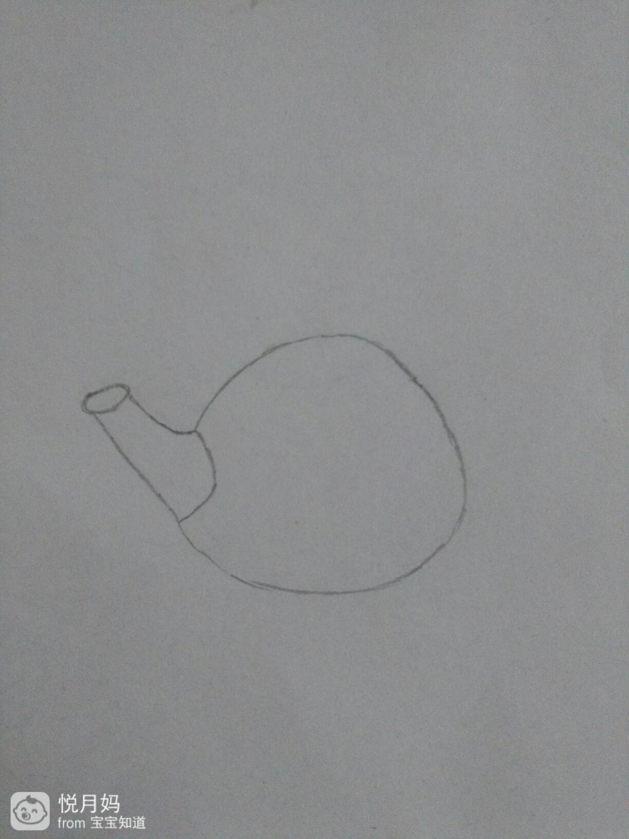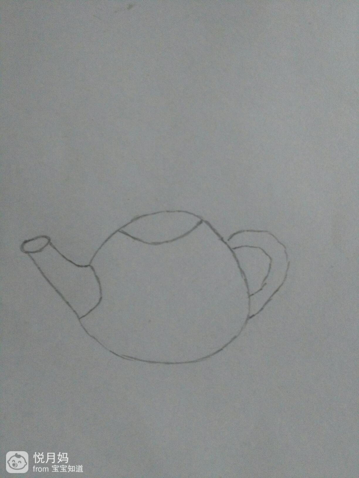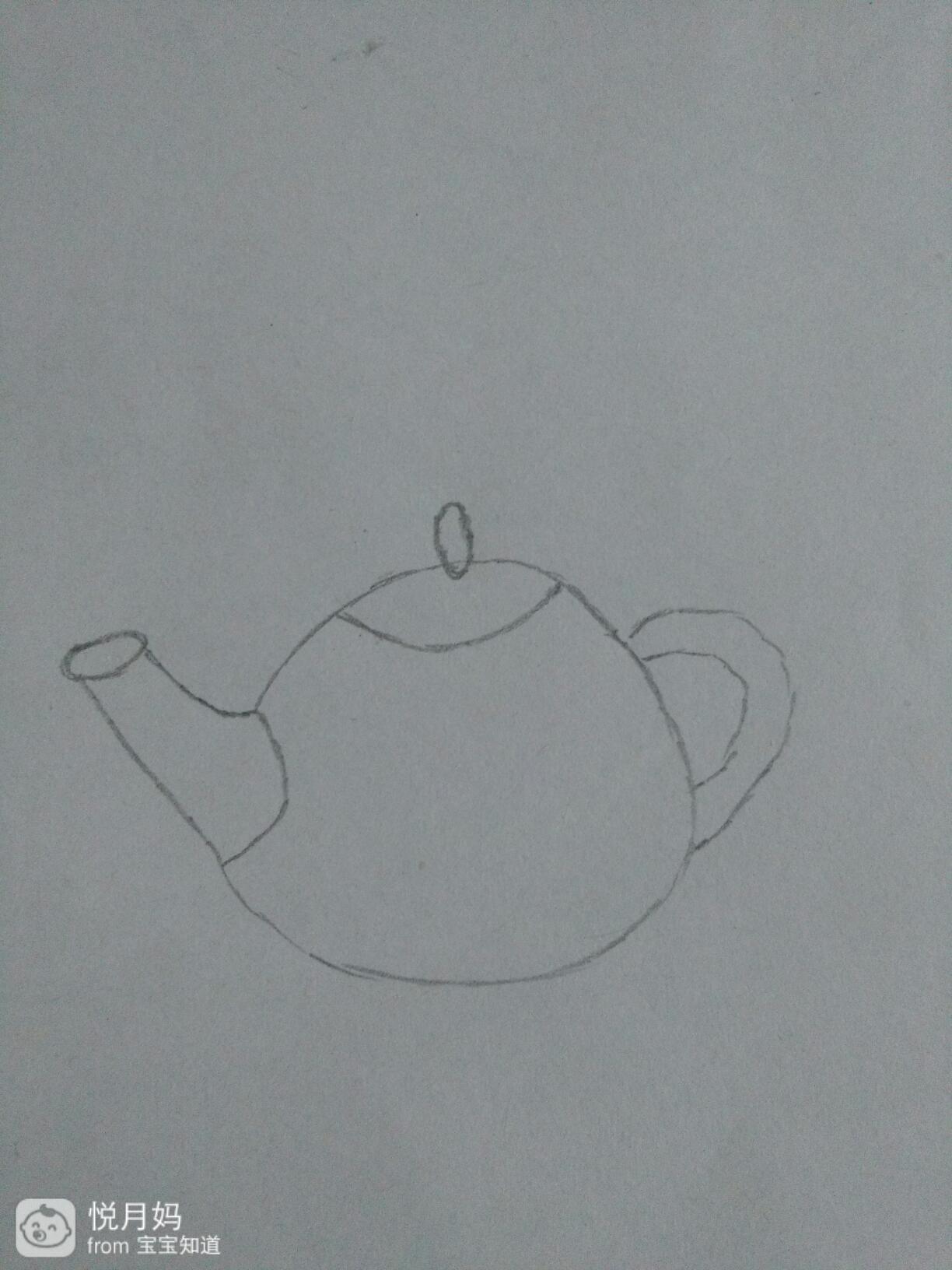 在这个茶壶的上方,茶壶的身体里画出口朝上的弧形,他就是茶壶的盖子,如下图所沙贸战示。