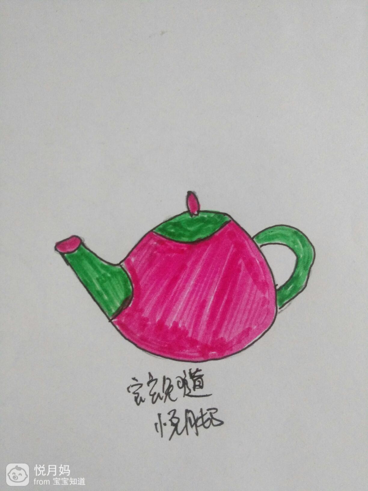 剩余的茶壶嘴盖,茶壶盖儿上面的扣子,还有茶壶的身体全部用红色涂上颜色,这个漂亮的茶壶画好了。