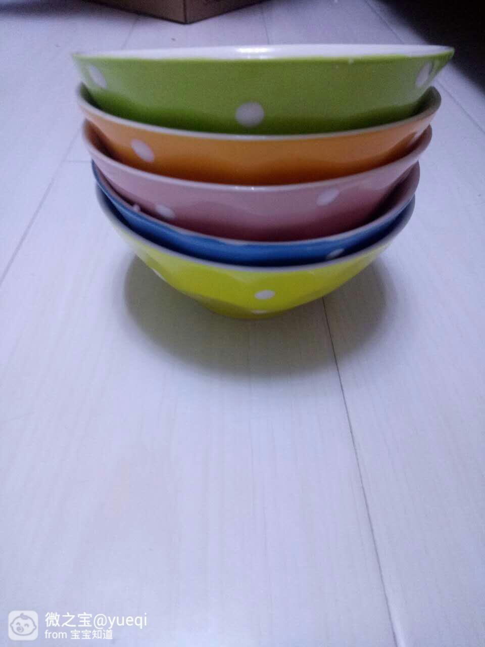 打开包装瞬间被这亮眼的颜色吸引了,一共是五个碗,一个碗一个颜色,非常的漂亮。