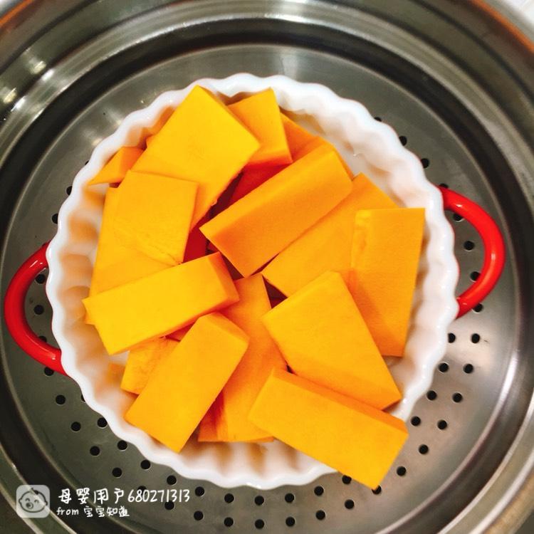1、南瓜蒸熟辨厘刺。