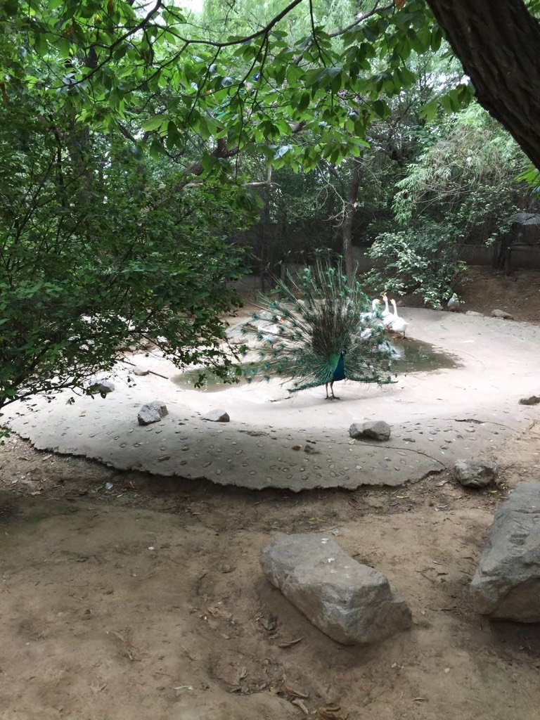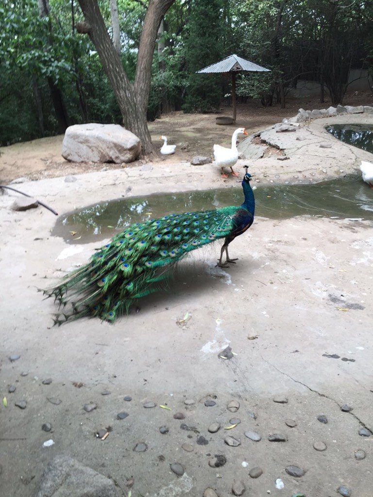 这只孔雀相当给面子, 不过羽毛好可怜, 都不丰满了