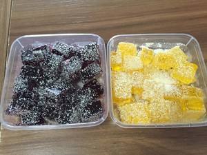 冷藏好可以拿岀来切块,还可以撒上一些椰蓉