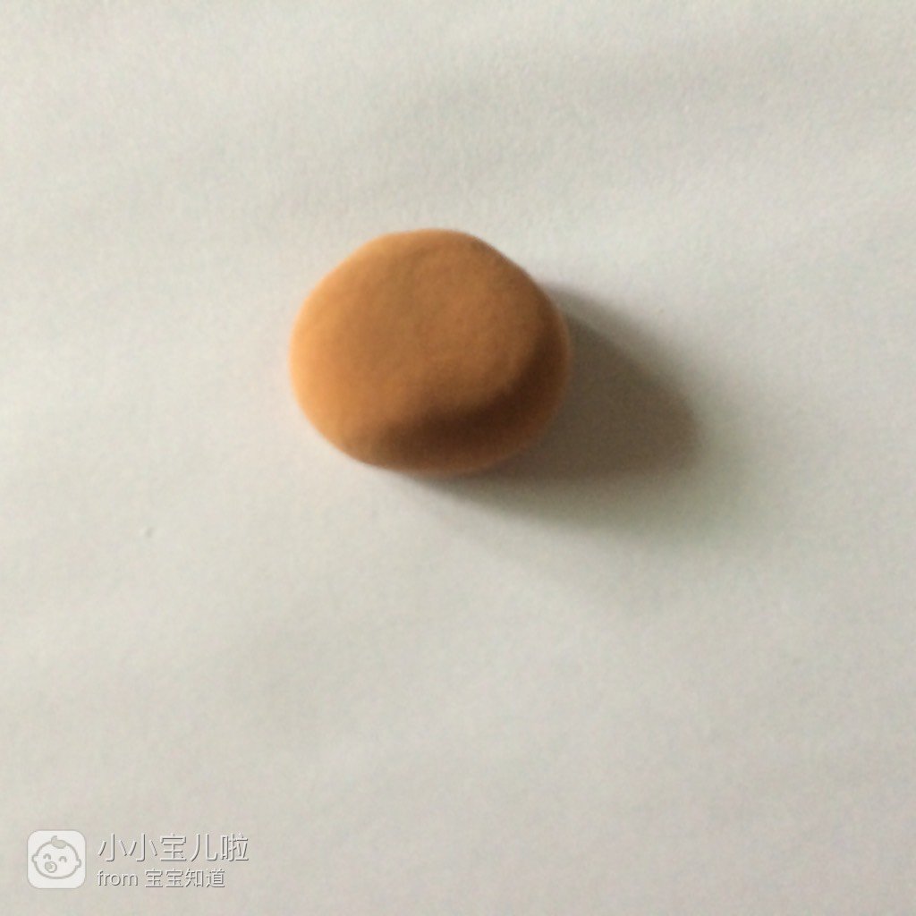 取棕色的粘土搓成一个椭圆形,然后压平一下,如图