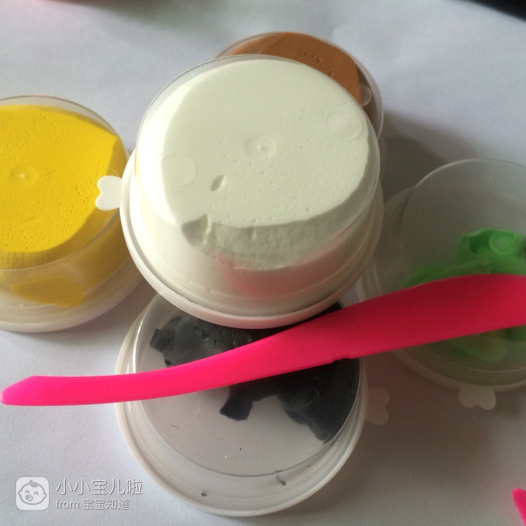 取白色的粘土搓成长条,然后分成四个小粒,两个大两个小的,然后把它们搓成小圆,粘在黑色圆上,眼睛就弄好了。
