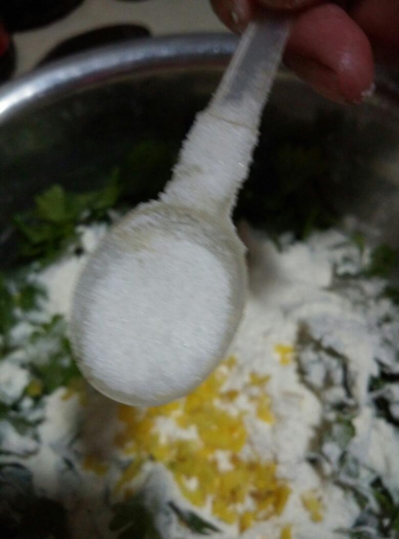 加入生姜再放一勺盐,不够可以等会再加。