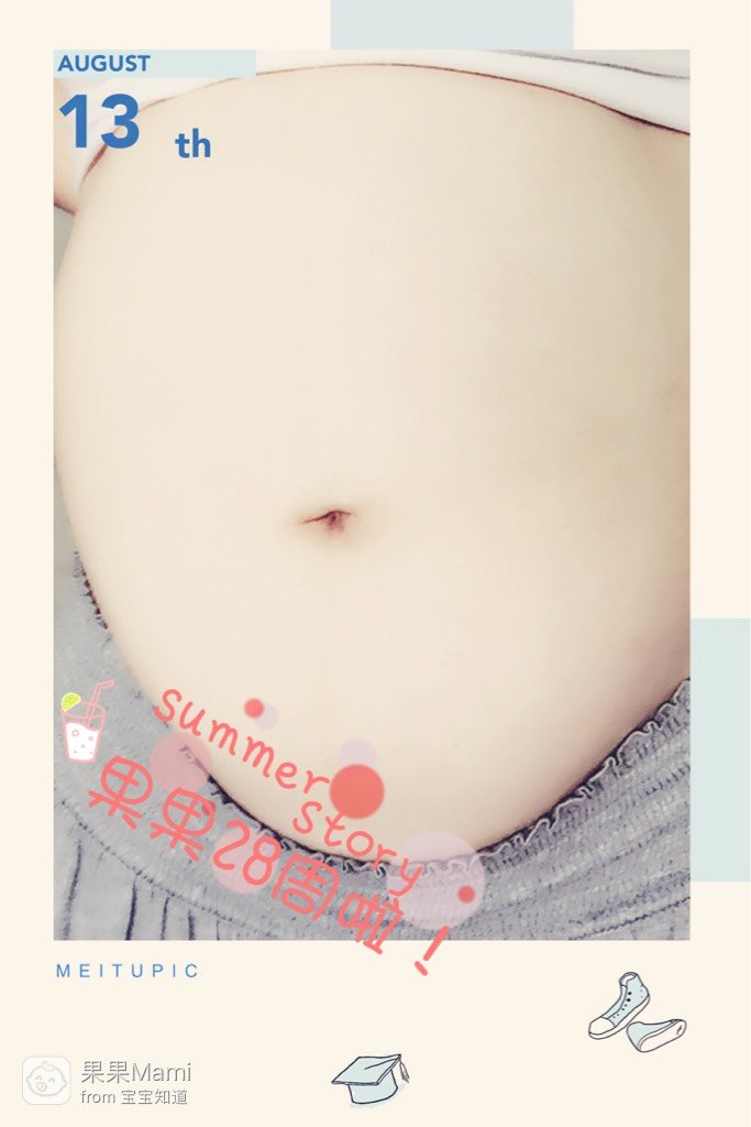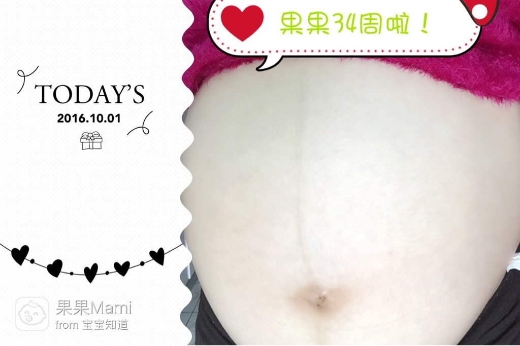 34周啦!宝贝呀妈咪的肚肚好圆啊!你在里面是否长胖了许多呢!