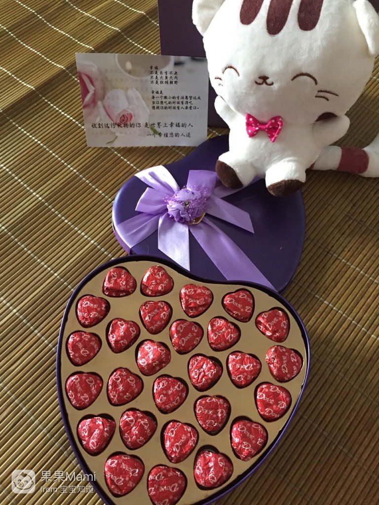 27周时正值情人节之际,从来不会浪漫的爸比给妈咪买了巧克力寄来外婆家,嘴上说着嫌弃爸比乱花钱,心里其实老开心了!这是你爸比给妈咪的第一份情人节礼物,其实主要是占了小公主的光!因为你爸比很希望宝贝是小公主哦!宝贝妈咪说明一下哦!我个人没有想要确定是公主或险涉吴者王子哦!因为不管怎样你都是我的宝贝哦!