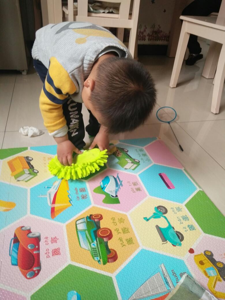 孩子的世界总有我想不到的惊喜,知道帮呈扬我拖地了,这是成长的又一个小突破哈。想法都挺奇特,套在脚上,说真漂亮!自己觉得特别美哈哈崇扬^ω^