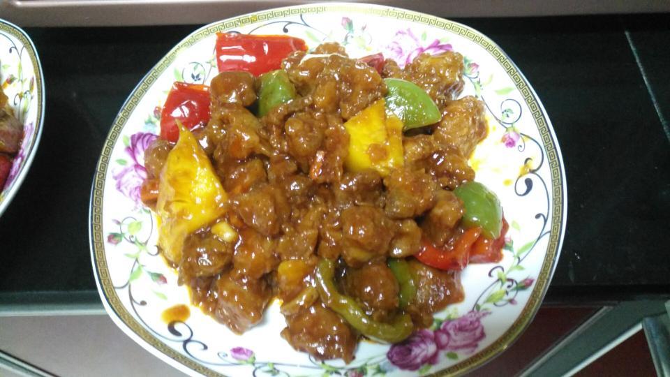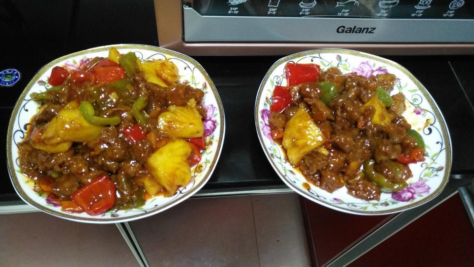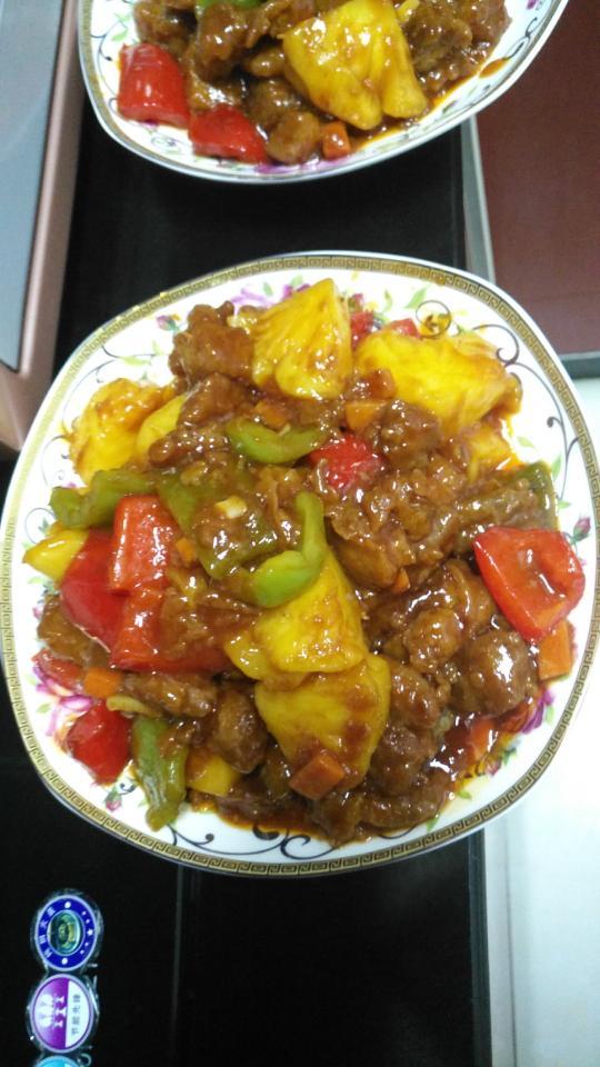 第一次自己亲手做的开胃菠萝咕噜肉,美食新鲜出炉啦!味道棒极啦!美味极啦!吃上去还真是色香味俱全啊!!