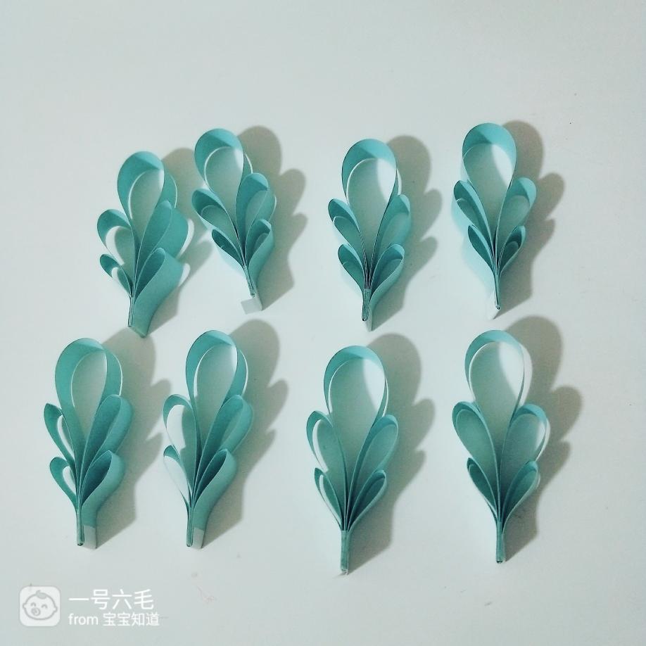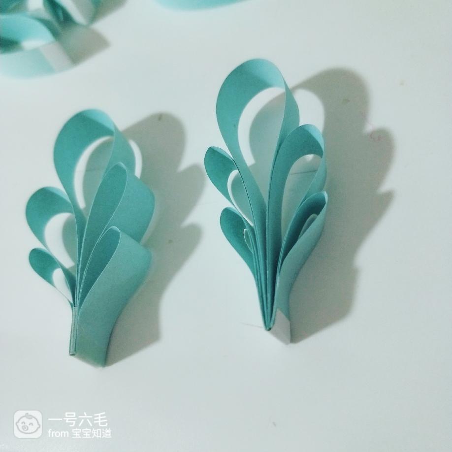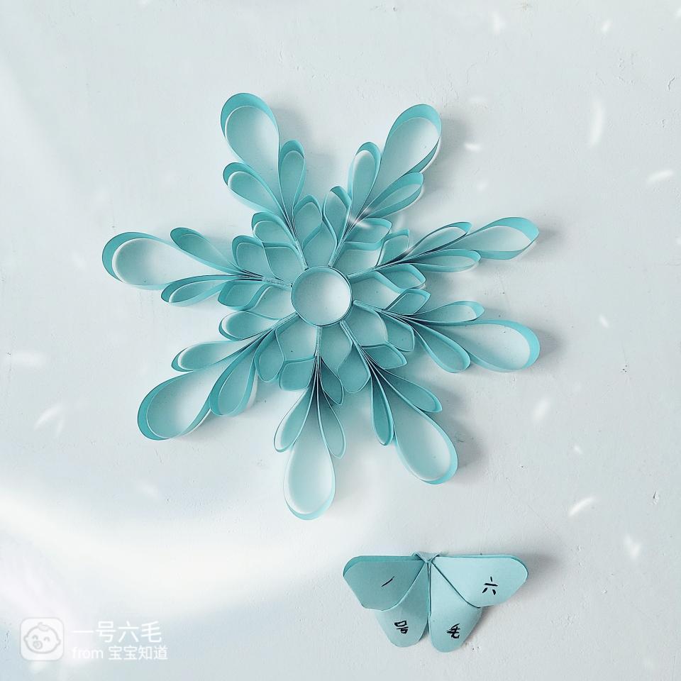 把八组雪花对称粘在圆圈外面,最短的纸条往下压一下,让雪花更饱满,这样就菠肆做好了