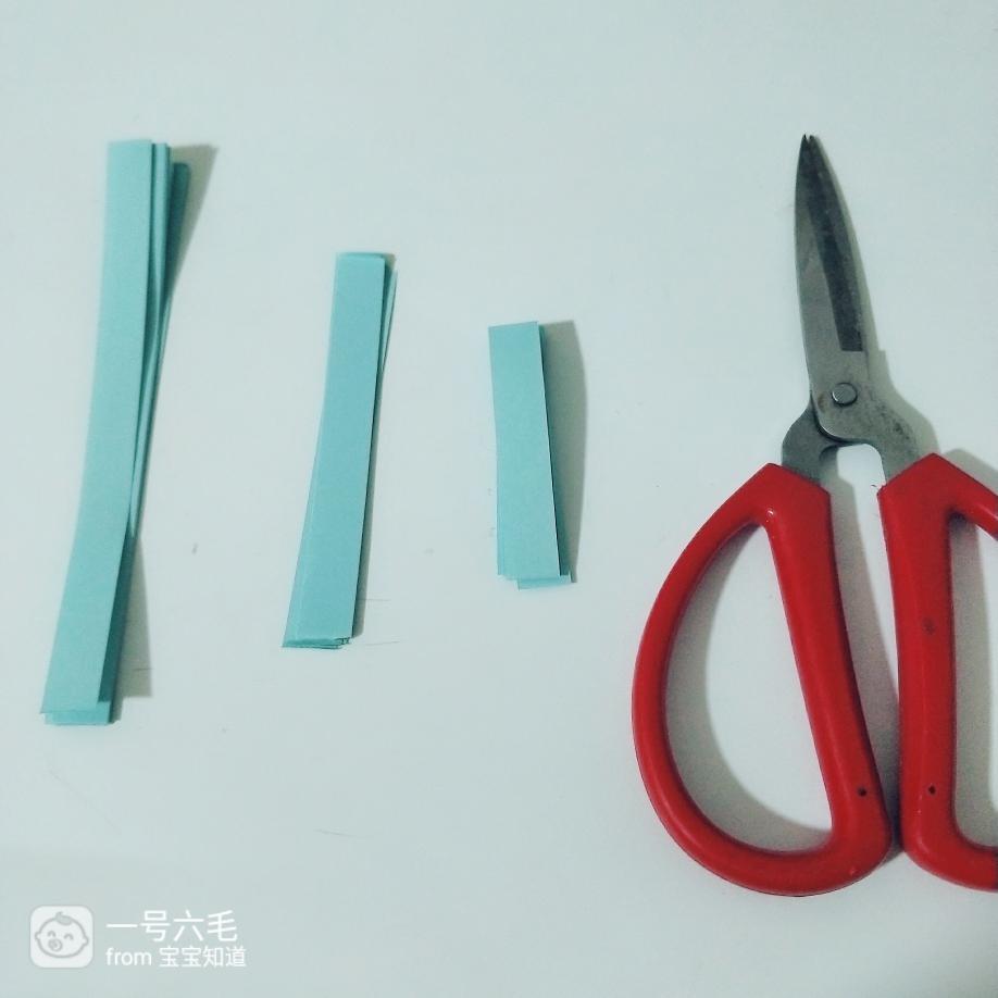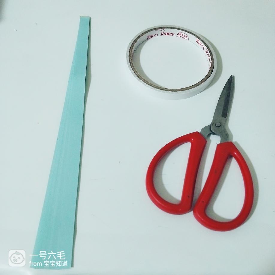 先用双面胶把最长的纸条对折粘一下,或者把双面胶贴在两片中间粘