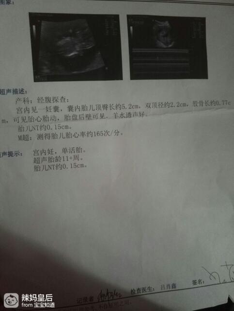 涵涵妈:B超数据显示(胚囊:23×17×16)出生胎儿性别为女宝。