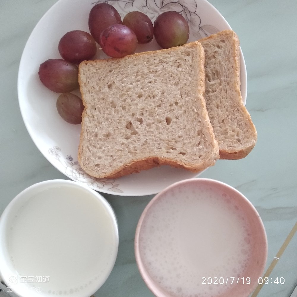 本来刺糟裕早上煮了云吞的,不过小儿子说要吃牛奶跟面包。纪暖于是我又给他准备了一份早餐,牛奶我给热了一下,面包没热就这样吃了,我还给他洗了几个葡萄,小儿子很喜欢吃葡萄的。