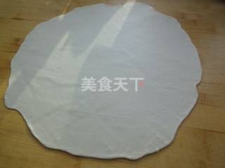 3 然后用擀面杖擀开。不要太薄就行。