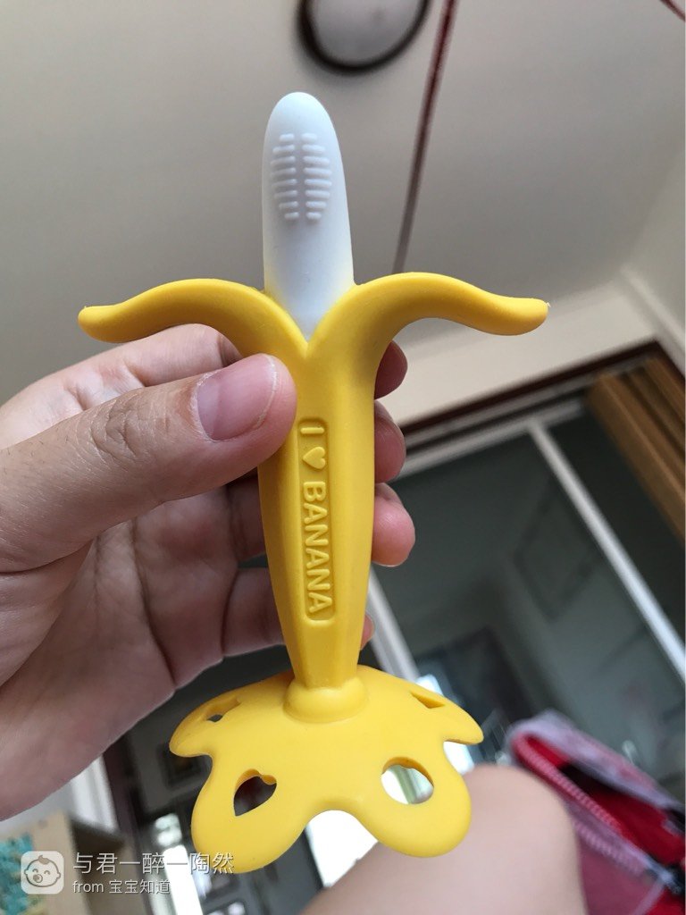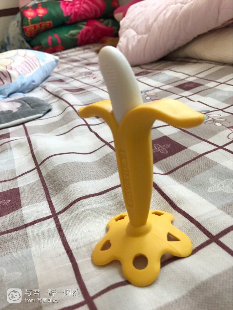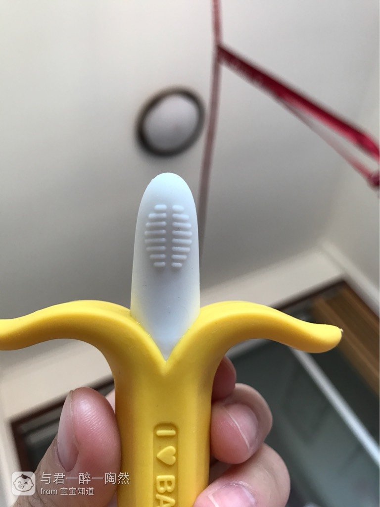 香蕉咬胶白色的部分前段有凸起,据说可以按摩牙床,可以缓解出牙带来的不适感。