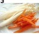 3. 胡萝卜切崇躬丝,金针菇切成比胡萝卜丝略长一点。