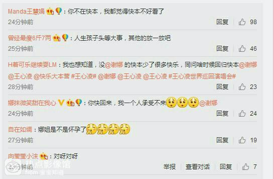 很多人都表示很想念娜娜,纷纷留言问她什么时候回查虏裁归快本吊岩,网友们也纷纷留言称:“人生孩子头等大事,其他的放一放吧”“娜姐,快回来吧,我们想你了,少了鬼马精灵谢娜,快本都不好看了”“娜姐是不是怀孕了”。