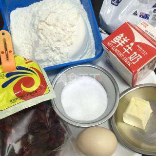 “ 情人节虽然已过,但想要玫瑰花可是随手可得的,不一定要在特定的日子里才能拥有,各式品种和各种颜色的玫瑰都可以见到,春天就是这么绚丽缤纷,生机盎然。我想把这么美丽的花朵融入到我的食物里,做个玫瑰花形的面包送给自己吧!馥郁芳香的气味陶醉其中。 ” 黄油 25g 盐 3g 酵母 4g 高筋面粉 240g 奶粉 15g 鸡蛋液 35g 牛奶 130g 白糖 45g 蔓越梅干 十几颗