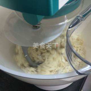 3 利用厨师机先低速和面10分钟,再用1档搅拌5分钟。其实这个和面用的时间和速度都要按照个人自家机器的性能来调整,不能照搬。