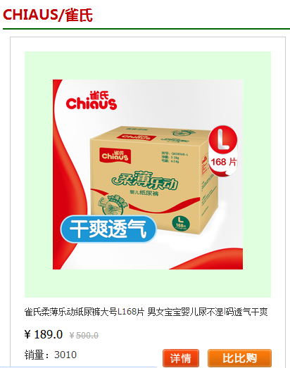 ◇雀氏纸尿裤一直在用,和超市质量一样好,透气,柔软,吸水好,物流很快,很满意,下次再逝恨惠顾,给满分。