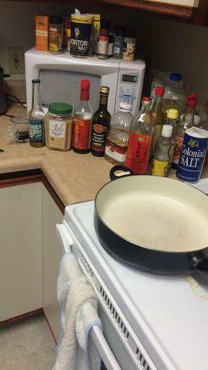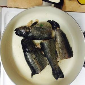 油半热,加入鱼。火别太大。煎2分钟。然后反面。 我的鱼皮掉的差不多了。。。。。