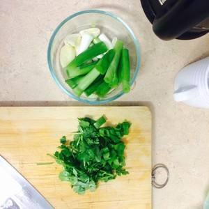 用料 undefined 大蒜去皮,拍一下。葱切段。