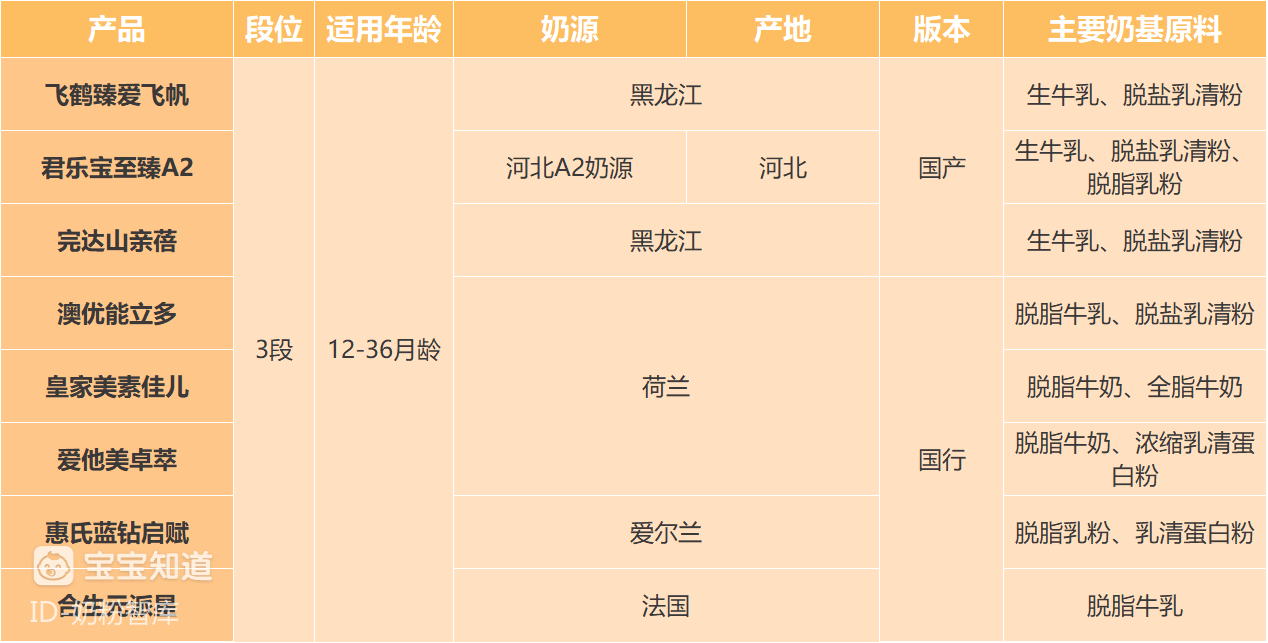 下面是8款奶粉的产品名、奶源、产地、版本、奶基原料等基础信息。