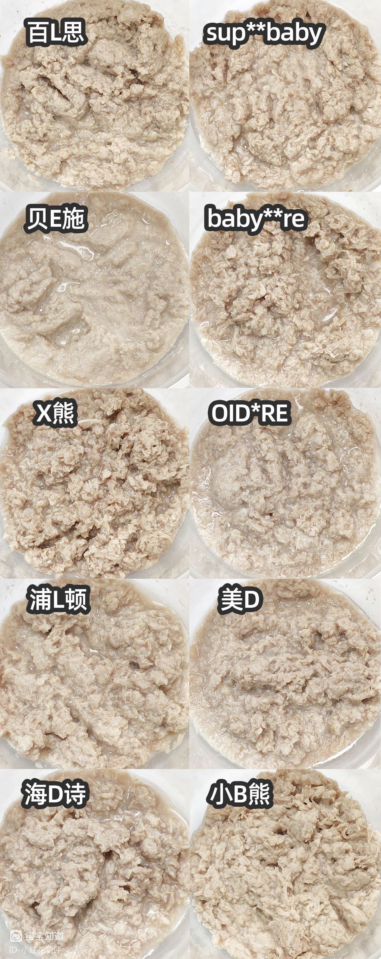 1. 仅贝E施是细腻的肉泥,其他均为小碎肉。