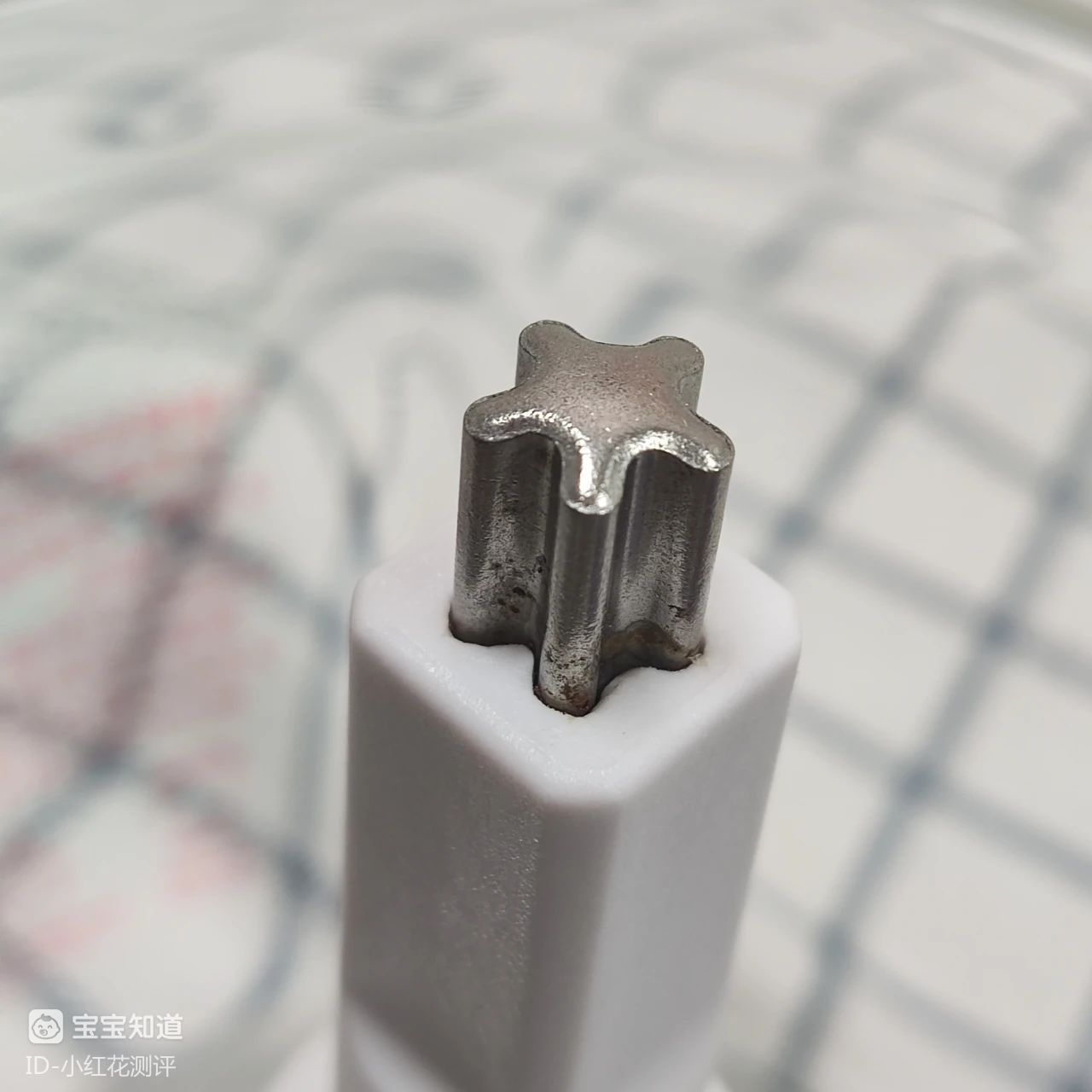 海D诗的刀组件与刀轴相接的地方,是一个螺丝钉,容易有食物残留,洗不干净。