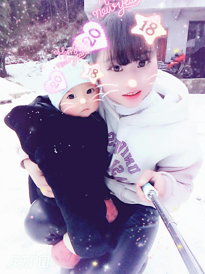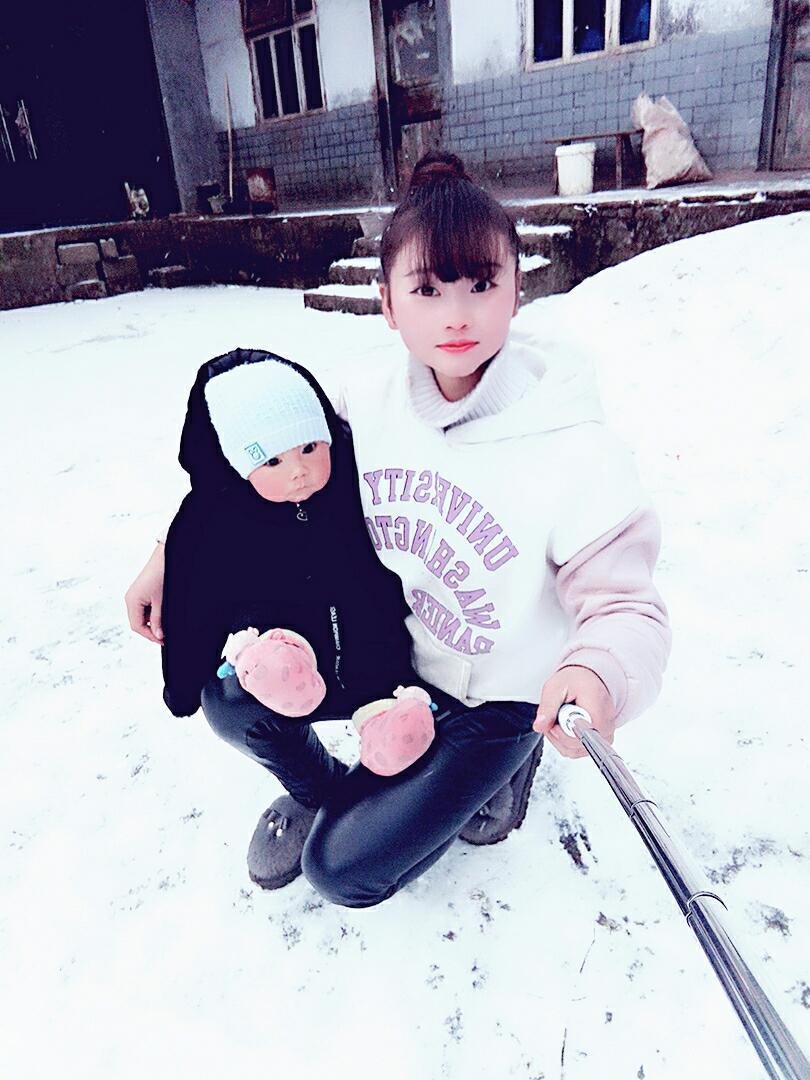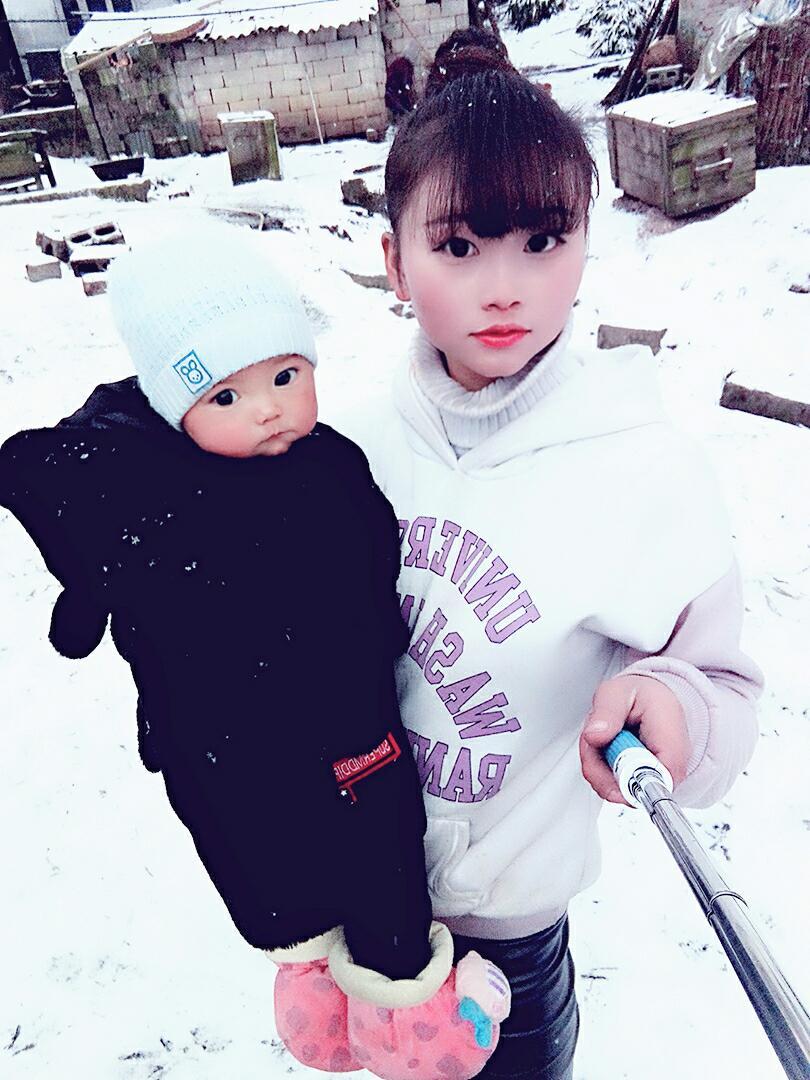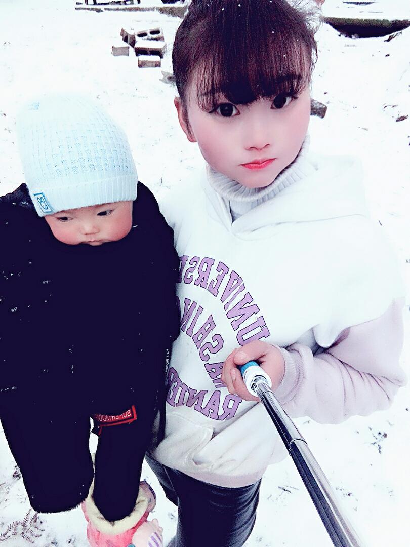 贵州六盘水下雪了 我的小宝贝喜欢的不得了 但是有点冷