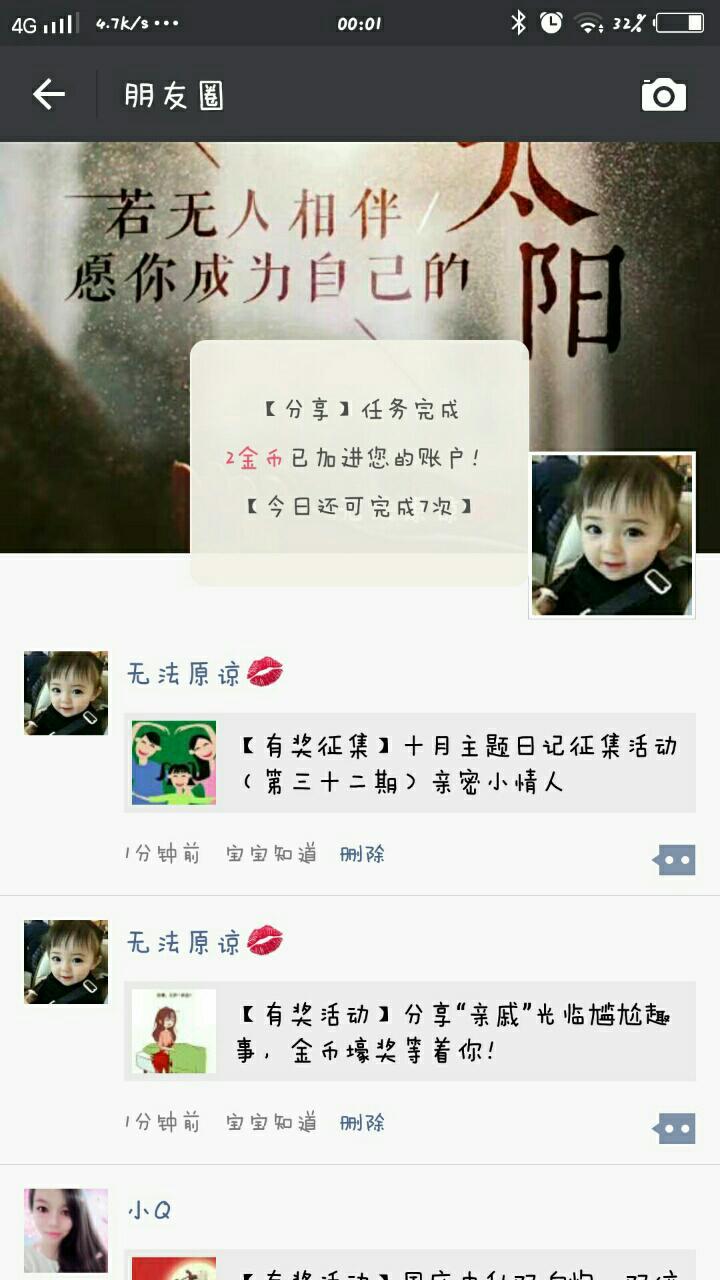 1、在情感交流圈以“【亲密小情人】+自拟题目”为题发帖。内容有关于宝宝的都可以,可以是TA的成长点滴,可以是因为TA的到来家里发生的变化,也可以是对TA爱的表达等等。发帖标题不少于8个字,标题与主题切合度高且优秀铜崭裕者,获奖几率更高哦。比如:【亲密小情人】宝贝,谢谢你走进我的世界;