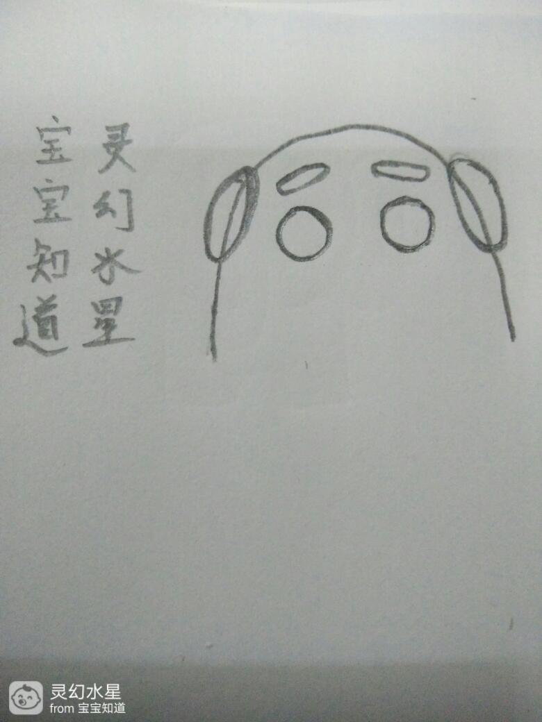 如图,用黑色铅笔在眼睛下方的中间画一个长条,做为小鸭子的嘴巴