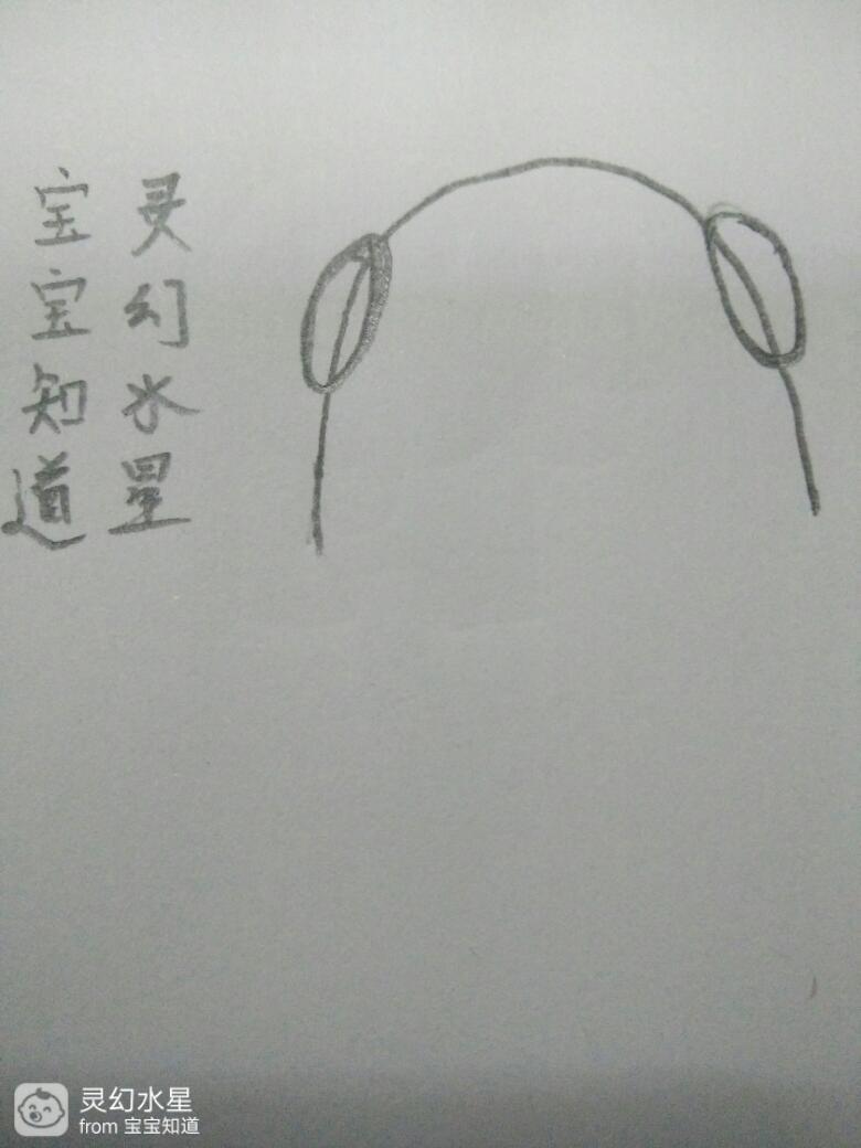 如图,用黑色铅笔在弓形两边各画一个椭圆形,做为坏大叔头上两边的头发