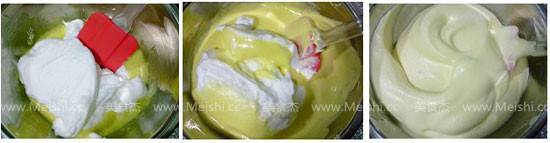 6. 取一半蛋白加入蛋黄糊中,切拌均匀