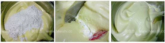 3、混合面粉的时候不用担心消泡,事实上这时候的蛋黄糊即不容易消泡也不会起筋,一定要捞底翻拌均匀。