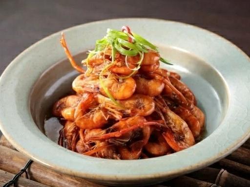 原料 河虾150克、小葱段50克、东古一品鲜15毫升、酱油5毫升、白糖10克、蚝油10克、鸡精、味精、色拉油各适量