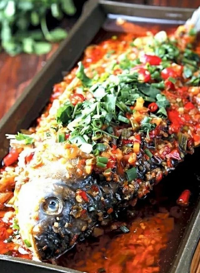 此菜看似传统的豆瓣鱼,却是突出泡椒风味,而且选用大鲫鱼,采用煮法浇汁成菜,这样让鱼肉更加鲜嫩。