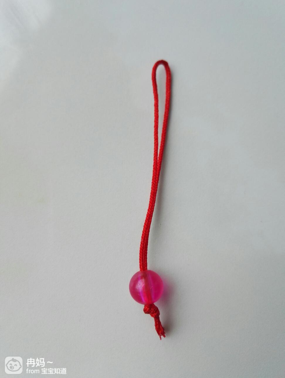 剪一小段红绳,对折后双线穿一颗珠子,然后再打结固定一下珠子。