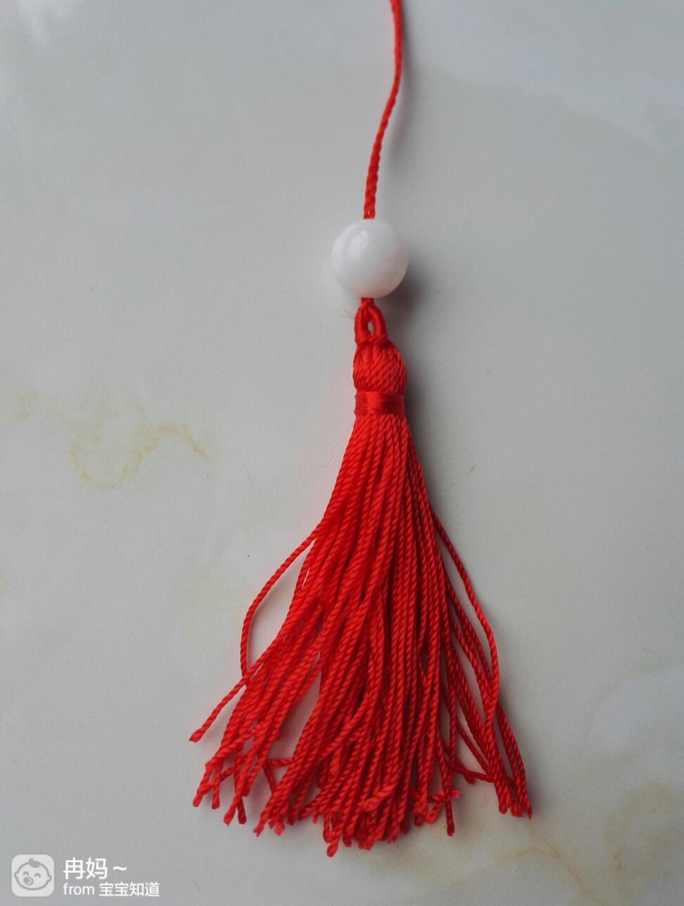 流苏上面双线串上一颗大点的白色珠子。
