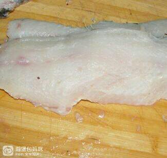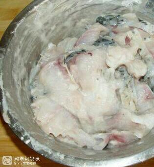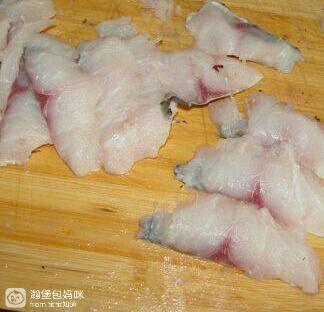 将鱼片里面放入料酒、盐、淀粉,腌渍。