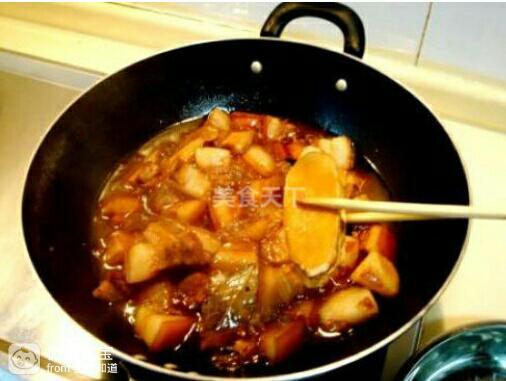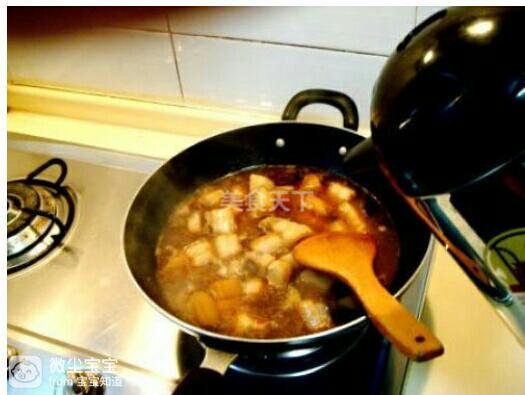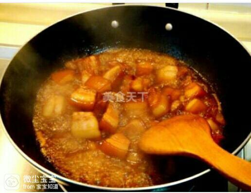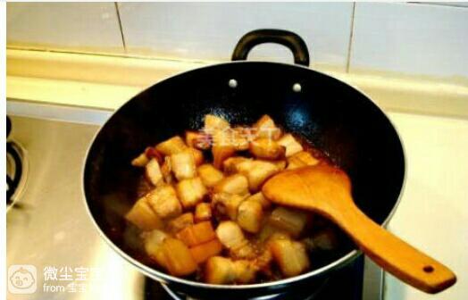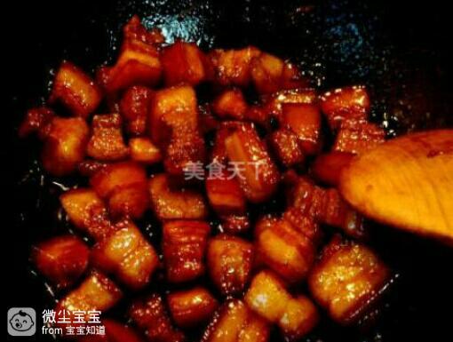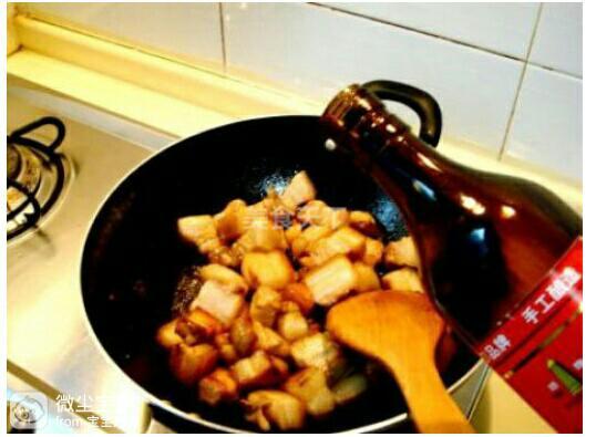 炒寸战到黄酒挥发,酱油均匀的吸附在肉块上为止。