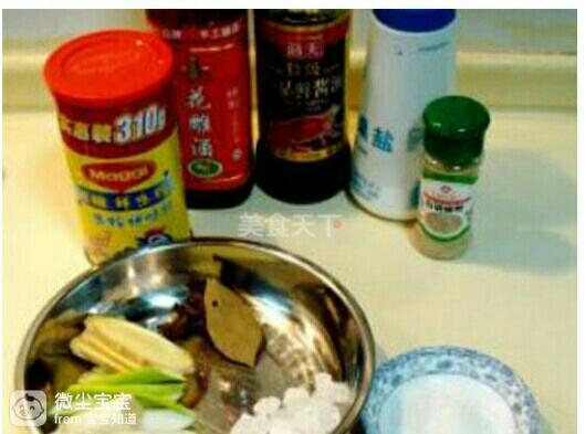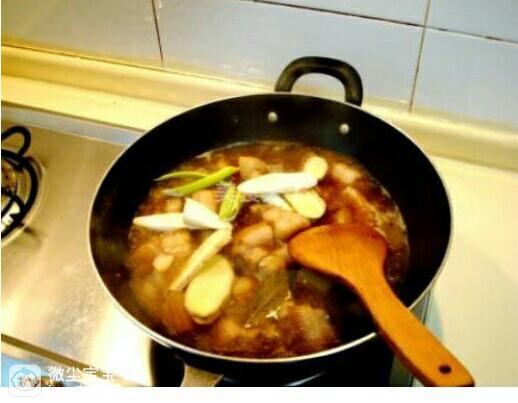 肉焖熟后,捡出葱、姜、八角、香叶不要。